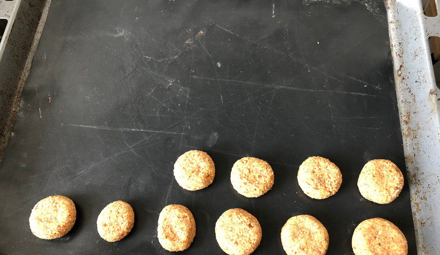 3. Jeweils mit etwa 1 EL Lebkuchenteig eine Kugel formen und auf mit Backpapier ausgelegte Backbleche setzen. Alternativ können die Lebkuchen auch auf Oblaten gesetzt werden. Im Ofen etwa 20 Minuten backen. Die Lebkuchen herausnehmen und auf einem Kuchengitter abkühlen lassen.